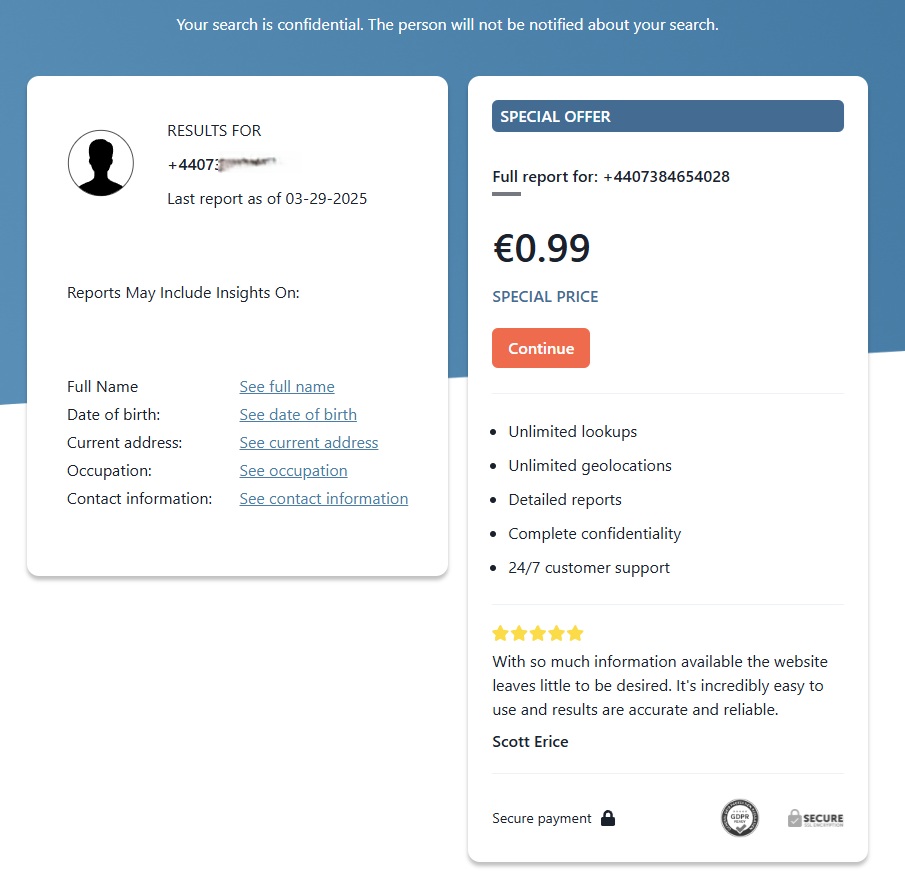 After writing my original review, I did some digging and found some useful information on the company that runs The Reverse Lookup. It is owned by Eudialyte Limited, based in Cyprus, (which explains the Euro).